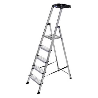 Aluminijske ljestve Secury sklopivog tipa opremljene su protukliznim gazištima, čepovima i dodatnom ladicom za odlaganje alata. Visina dosega iznosi 184 cm, a sklopljene su visoke 105 cm, što olakšava spremanje.