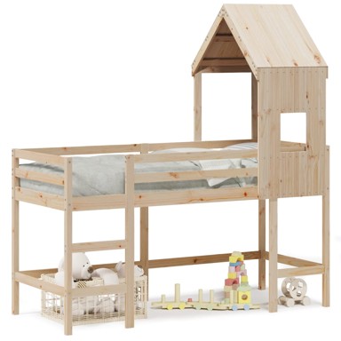 #4Krevet na kat s krovom 90 x 190 cm od masivne borovine