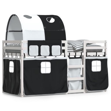Krevet na kat sa zavjesama bijelo-crni 90 x 190 cm od borovine