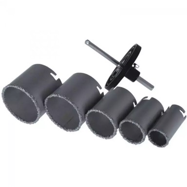 Set kruna s volfram-karbidnim premazom namijenjen je suhom bušenju bez udarca u cigli, porobetonu, pločicama i plastici. Sadrži promjere 33, 43, 53, 67 i 73 mm.