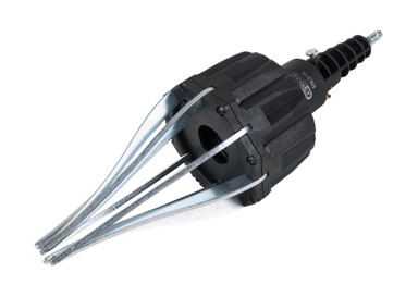 KS Tools pneumatski razvlakač gumenih manžeta 515.3100 omogućuje odvajanje zglobnih manžeta kroz dršku, primjenjiv na sve univerzalne osovinske manžete za motorna vozila (meke). Pogodan je za vozila s pogonom na sva četiri točka i male transportere, te za zglobove pogonskih osovina promjera od 25 do 110 mm. Koristi komprimirani zrak za širenje zglobnih krakova, s mogućnošću precizne doziranja pomoću potisnog dugmeta. Ne zahtijeva dodatno podmazivanje, opremljen je integriranim sigurnosnim ventilom i 1/4'' utikačem spojnice. Lagane je i izdržljive konstrukcije.