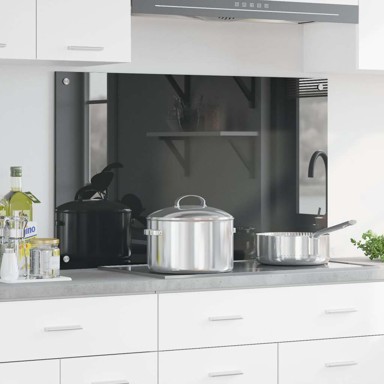 Tamno siva kuhinjska pregrada dimenzija 100 x 60 cm donosi funkcionalnu zaštitu zidova i modernu estetiku. Kaljeno staklo pruža izdržljivost i otpornost na toplinu, dok glatka površina olakšava čišćenje. Minimalistički dizajn i prozirna završna obrada reflektiraju svjetlost i unose sofisticiran izgled, čineći prostor elegantnim i praktičnim.
