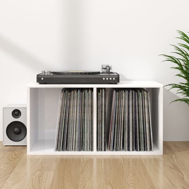 Kutija za pohranu vinilnih ploča sjajna bijela 71x34x36 cm drvo