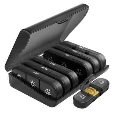 Tjedni organizator tableta s jasno podijeljenim pretincima za jutro, podne i večer omogućuje jednostavno i sigurno praćenje terapije. Sastoji se od sedam zasebnih spremnika, svaki označen danima u tjednu, što ga čini pogodnim za kućnu upotrebu, ali i putovanja.