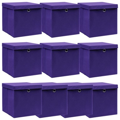 Kutije za pohranu s poklopcima 10 kom ljubičaste 32x32x32 cm