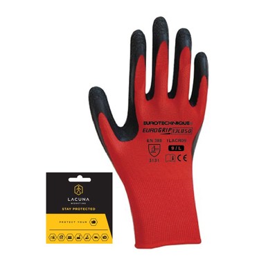 Naziv proizvodaLACUNA Zaštitne rukavice POLIESTER CRVENA S CRNIM PREMAZOM VEL. 10