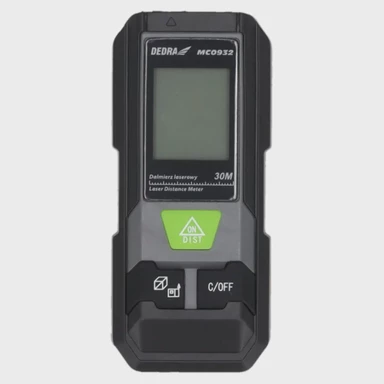 Laserski daljinomjer s rasponom mjerenja 0,03–30 m i točnošću ±5 mm namijenjen je brzom mjerenju udaljenosti, površine i volumena. Uključuje trigonometrijske funkcije, radi s laserom klase II (635 nm, <1 mW) i napaja se s 2×AAA baterije, uz torbicu i uzicu u kompletu.