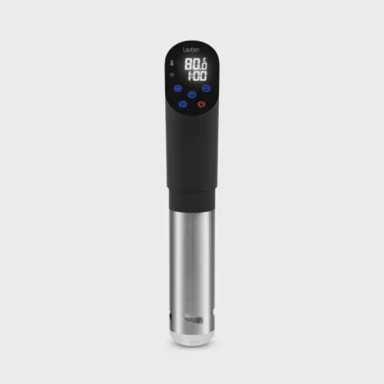 LAUBEN Smart Sous Vide 1200SB omogućuje preciznu pripremu mesa, ribe i povrća uz kontrolirano kuhanje na niskoj temperaturi. Snaga od 1200 W, raspon temperature od 20 do 90 °C, preciznost od ±1 % i cirkulacija vode od 8,5 litara u minuti osiguravaju ravnomjerno kuhanje i pouzdane rezultate. Upravljanje putem zaslona osjetljivog na dodir i mobilne aplikacije dodatno olakšava korištenje, a vodootpornost IPX7 i timer do 99 sati čine uređaj praktičnim za svakodnevnu i zahtjevniju kulinarsku upotrebu.