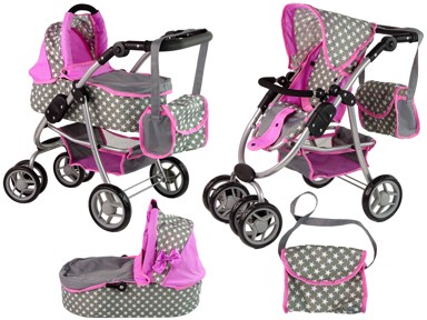 Kolica za lutke Carrycot Bag u sivoj boji s bijelim zvjezdicama savršen su izbor za djevojčice koje vole brinuti o svojim lutkama. Model s torbom za pohranu i udobnim ruč… Pročitaj više