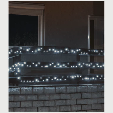 Dekorativna LED rasvjeta idealna je za ukrašavanje vašeg dvorišta. Sa 500 LED lampica na zelenom kablu dužine 34 metra, pruža obilje svjetlosti koja će oživjeti vaše vanjsko okruženje. Hladno bijela svjetlost stvara modernu i svježu atmosferu.