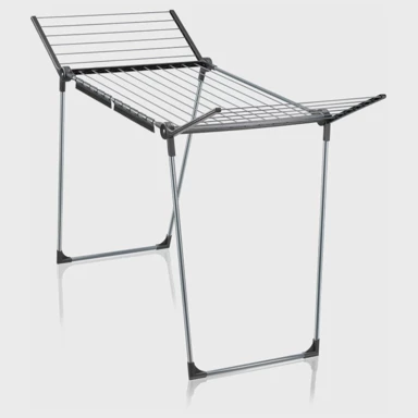 LEIFHEIT sušilo za rublje Pegasus 180 Solid Black stabilan je stalak za sušenje s preklopnim stranicama, prikladan za unutarnju i vanjsku upotrebu. Duljina sušenja od 18 m odgovara kapacitetu do dvije perilice rublja, a visina bočnih krila od 100 cm omogućuje praktično vješanje dužih komada odjeće. U paketu se nalaze i držači za male tekstilne predmete, dok se sušilo nakon upotrebe jednostavno sklapa i odlaže uz uštedu prostora.