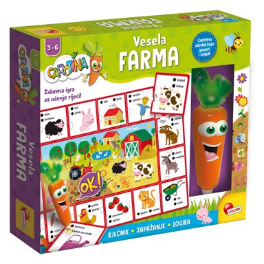 LISCIANI Društvena igra, Vesela farma omogućava djeci da nauče o životinjama na farmi kroz igru. Igra uključuje različite zadatke i aktivnosti koje pomažu djeci da prepoznaju životinje, nauče o njihovim navikama i staništima te razvijaju osnovne socijalne vještine poput suradnje i komunikacije. Vesela farma je edukativna i zabavna, pružajući djeci priliku da kroz igru usvoje osnovne pojmove o prirodi i farmi. Društvena igra također doprinosi razvoju logičkog razmišljanja i kreativnosti, čineći je izvrsnim izborom za mlađu djecu.