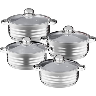 Set uključuje četiri lonca s poklopcima različitih kapaciteta kako bi zadovoljili sve vaše kulinarske potrebe: lonac od 3,5 L (24 x 10 cm) za priloge i manje obroke, lonac od 4,5 L (26 x 11 cm) za svakodnevne juhe i variva, lonac od 6,0 L (28 x 12 cm) za obiteljske ručkove te lonac od 8,0 L (30 x 13 cm) za veće količine hrane.