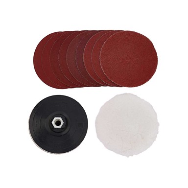 Opseg isporuke uključuje kapu za poliranje od 100% ovčje vune i po dvije brusne pločice granulacije 40, 80, 120, 180 i 240.