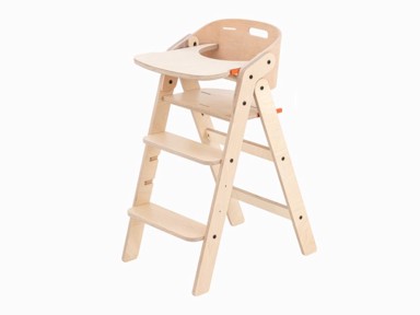MAMY TOYS Dječja blagovaonska stolica 2-u-1 s dodacima, sklopiva, prati rast djeteta od rane dobi do viših uzrasta. Konstrukcija od šperploče i prirodnog drva, s uklonjivim pladnjem, pojasevima i podesivim osloncem za noge, kombinira sigurnost i funkcionalnost. Sklopivi dizajn olakšava pohranu, a nosivost do 70 kg i EN 14988 potvrđuju pouzdanost.
