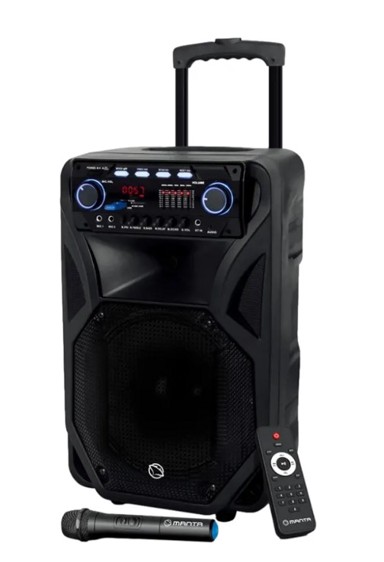 Manta SPK5021PRO FONOS je idealan za sve koji vole pjevati i zabavljati se s prijateljima i obitelji, pružajući snažan zvuk i bežičnu slobodu pjevanja. U paketu dolazi zvučnik, daljinski upravljač, bežični mikrofon i upute za uporabu.