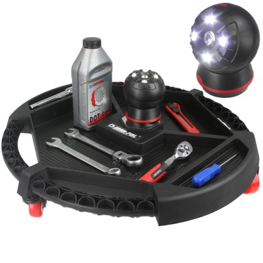 Mar-Pol radionička kolica s ladicom i LED 360° svjetiljkom praktičan su pomoćnik za mehaničare i majstore. Konstrukcija omogućuje provlačenje kolica ispod vozila kako bi alati i oprema uvijek bili pri ruci, dok ugrađena LED svjetiljka na magnetu osvjetljava teško dostupna i tamna mjesta. Udobna površina za ležanje i dodatni prostor za odlaganje čine rad ispod automobila znatno ugodnijim i učinkovitijim.