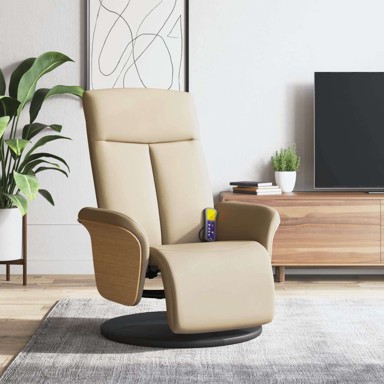 Masažna fotelja od tkanine s osloncem za noge, krem