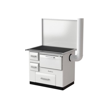 Štednjak Smederevo 7 u bijeloj boji koristi drvo ili ugljen kao gorivo, s snagom od 8,5 kW do 9,5 kW, što ga čini izuzetno učinkovitim za grijanje. Dimovodna cijev je smještena desno, omogućavajući fleksibilnu instalaciju u različitim prostorima.