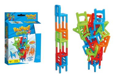 Igra uključuje 24 stolice u 6 različitih oblika i 4 boje, a cilj je slagati stolice jednu na drugu, a igrač koji sruši toranj gubi. Set uključuje 24 stolice.… Pročitaj više