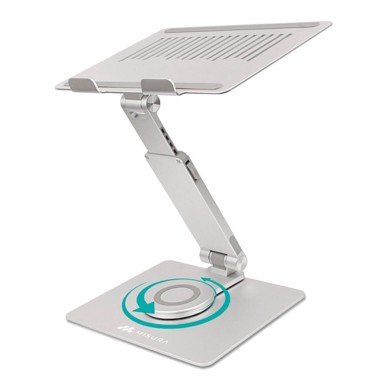 Misura ME20 Silver nudi naprednu ergonomiju uz 360-stupanjski rotirajući zglob i podesivu visinu od 35 do 320 mm za prijenosnike veličine 10–17". Čvrsta aluminijska konstrukcija sa silikonskim umecima osigurava stabilnost i nosivost do 10 kg, što ga čini idealnim za veće i teže uređaje. Rotirajuća baza olakšava dijeljenje sadržaja s kolegama ili klijentima, dok elegantna srebrna završna obrada podiže estetiku radnog stola.