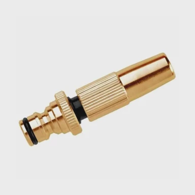 Mlaznica s brzom spojkom izrađena je od poliranog mesinga za dugotrajnu otpornost i sigurnu uporabu u vrtu i pri čišćenju. Podesivi mlaz sa samocentrirajućim protokom omogućuje precizno usmjeravanje vode prema potrebi. Brza spojka s muškim navojem olakšava priključivanje, a mogućnost potpunog zatvaranja na kraju uvrtanja povećava kontrolu protoka.