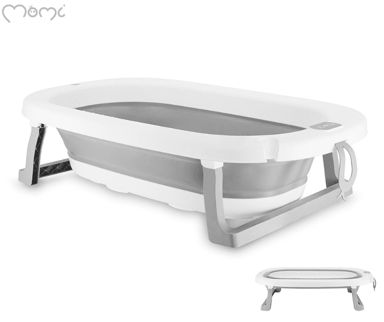 MOMI sklopiva kada NATA, siva boja je sklopiva dječja kadica s ručkom za vješanje u sklopljenom stanju i odvodnim čepom za jednostavno izlijevanje vode. Boja bijelo-siva.