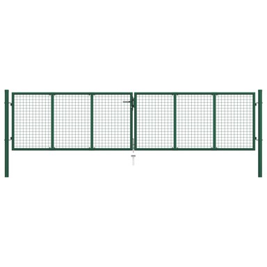 Vrtna vrata oblikovat će praktičnu pregradu koja će odvojiti vaš vrt od vanjskog svijeta. Izuzetno stabilna i izdržljiva, Mrežasta vrata za ogradu osiguravaju čvrstu pregradu za vaš vrt, dvorište ili terasu. Naša vrata izrađena su od kaljenog čelika koji je savijen u željeni oblik te stručno zavaren, pocinčan i obložen prahom radi izdržljivosti. Također dolaze s bravom s vijkom za brzo zaključavanje i stupovima za jednostavnu ugradnju. Tri odgovarajuća ključa također su uključena u isporuku. Vrata izvrsna su kombinacija snage, stabilnosti i otpornosti na koroziju! - Boja: Tamnozelena - Materijal: Pocinčani čelik s praškastom oblogom - Ukupna veličina: 415 x 150 cm (Š x V) - Veličina vrata: 400 x 100 cm (Š x V) - Stup: Φ 60 mm - Uključena 3 ključa