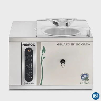 NEMOX Gelato 5K Crea i-Green profesionalni je uređaj namijenjen ugostiteljstvu, malim mliječnim pogonima, laboratorijima za sladoled i specijaliziranim slastičarnicama. Učinkovit sustav omogućuje pripremu oko 1,25 kilograma gelata ili sorbeta u 12–15 minuta, odnosno do 5 kilograma na sat. U ručnom načinu rada kompresor i miješalica rade neovisno, a integrirani senzor zaustavlja miješalicu kada smjesa postane previše gusta.