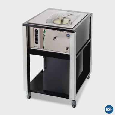 NEMOX Gelato 6K T-Mobile i-Green predstavlja mobilno rješenje profesionalnog aparata za sladoled integriranog u kolica izrađena od lakiranog čelika s elementima od poliranog nehrđajućeg čelika. Kolica uključuju ormarić za pribor i sustav kotača s kočnicama koji omogućuju jednostavno premještanje u svim uvjetima. Aparat priprema oko 1,75 kilograma gelata u 12–15 minuta, uz učinkovitost od približno 5 kilograma na sat.