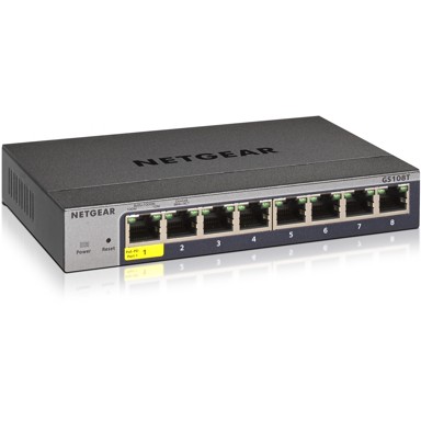 NETGEAR Switch GS108Tv3 pruža napredne funkcije upravljanja i visoku pouzdanost u kompaktnom formatu sa osam priključaka. Ovaj inteligentni switch idealan je za mala i srednja poduzeća koja zahtijevaju pouzdanu mrežnu infrastrukturu