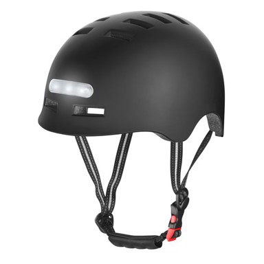 Kaciga za odrasle Newrban LED u veličini L, crne boje, nudi četiri načina osvjetljenja i punjiva je putem USB-C priključka, s uključenim kabelom u pakiranju.
