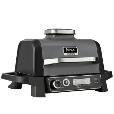 NINJA električni roštilj OG701EU u crnoj boji spaja funkcije vanjskog roštilja, dimilice i vrućozračne friteze u jednom višenamjenskom uređaju. Snaga od 2400 W i sedam programa omogućuju pripremu raznolikih jela, dok neprijanjajuća površina i pladanj za kapanje olakšavaju čišćenje. Kompaktne dimenzije i termoregulacija čine ga praktičnim rješenjem za kućnu upotrebu uz profesionalne rezultate pečenja.