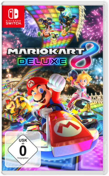 Mario Kart 8 Deluxe je popularna trkaća videoigra razvijena od strane Nintendo-a, koja je dostupna na konzoli Nintendo Switch. U igri, igrači preuzimaju ulogu omiljenih likova iz Mario svijeta i natječu se na raznolikim i živopisnim stazama koje su prepune prepreka i moćnih predmeta. Ova verzija igre nudi poboljšanu grafiku, proširene opcije prilagodbe vozila, kao i novi sadržaj, uključujući dodatne staze i likove. Mario Kart 8 Deluxe omogućava zabavu za jednog igrača, ali i multiplayer mod, gdje se može natjecati do 12 igrača online ili lokalno, pružajući beskonačne sate zabave i uzbuđenja.