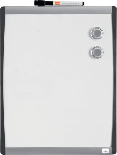 NOBO magnetna mini ploča dimenzija 287x355 mm dizajnirana je s modernim zakrivljenim okvirom za osobnu ili uredsku uporabu. Bijela magnetska površina omogućuje pisanje i pričvršćivanje bilješki na malom, preglednom formatu.