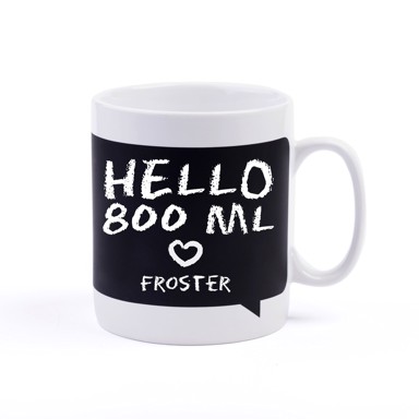 Keramička šalica visoka je 12,5 cm i ima kapacitet od 800 ml, a u setu dolazi i bijela kreda. Tisak prekriva cijelu površinu šalice, ali nije prikladna za perilicu posuđa… Pročitaj više