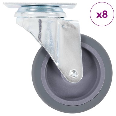 Set od 8 okretnih kotačića bit će savršen dodatak maloj opremi i namještaju poput radne klupe, kolica, stolića za kavu, stalka za biljke, polica za knjige, kolica za kupnju itd. Ovi kotačići napravljeni su od TPR-a (termoplastične gume) koji se odlikuje dobrom otpornošću na udarce i vibracije, što im omogućuje da rade glatko i tiho. Osim toga, njihove mekane površine učinkovito štite vaš pod od grebanja. Pocinčani željezni okvir vrlo je otporan na hrđu, čime pridonosi čvrstoći i izdržljivosti kotačića. Svaki kotačić ima maksimalnu nosivost do 45 kg. Isporuka uključuje 8 okretnih kotačića. - Boja: Siva - Materijal: TPR (termoplastična guma) i pocinčano željezo - Promjer kotačića: 75 mm - Širina kotačića: 27 mm - Veličina ploče: 65 x 65 mm (D x Š) - Udaljenost otvora: 49 x 49 mm - Visina strukture: 92 mm - Maksimalna nosivost: 45 kg (svaki kotačić) - Isporuka uključuje 8 okretnih kotačića