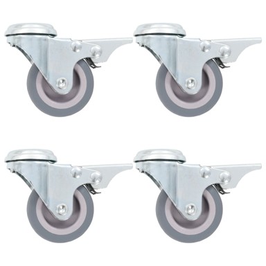 Set od 16 okretnih kotačića, od kojih pola ima kočnice, bit će savršen dodatak maloj opremi i namještaju poput radne klupe, kolica, stolića za kavu, stalka za biljke, polica za knjige, kolica za kupnju itd. Ovi kotačići napravljeni su od TPR-a (termoplastične gume), koji se odlikuje dobrom otpornošću na udarce i vibracije, što im omogućuje da rade glatko i tiho. Uz to, njihove mekane površine učinkovito štite vaš pod od grebanja. Pocinčani željezni okvir vrlo je otporan na hrđu. čime pridonosi čvrstoći i izdržljivosti kotačića. Ovi okretni kotačići opremljeni su kočnicama za fleksibilno upravljanje. Svaki kotačić ima maksimalnu nosivost do 35 kg. Isporuka uključuje 16 okretnih kotačića s otvorom za vijak, od kojih polovica ima kočnice. - Boja: Siva - Materijal: TPR (termoplastična guma) i pocinčano željezo - Promjer kotačića: 50 mm - Širina kotačića: 20 mm - Promjer otvora za vijak: M10 - Visina strukture: 70 mm - Maksimalna nosivost: 35 kg (svaki kotačić) - Isporuka uključuje 16 okretnih kotačića s otvorom za vijak, od kojih polovica ima kočnice