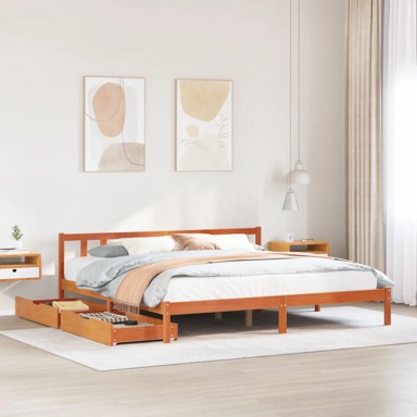 Osigurajte si bolji i miran san uz ovaj okvir za krevet! Dobrodošao je dodatak svakoj spavaćoj sobi. Stabilan i dugotrajan okvir: Masivna borovina poznata je po svojoj snazi i izdržljivosti. Njene ravne šare i prepoznatljivi čvorovi pridonose rustičnom šarmu. Rešetkasta podnica za optimalnu potporu: Okvir kreveta opremljen je rešetkastom podnicom za potporu i prozračnost vašeg madraca. Potpuno iskoristite prostor: Ovaj okvir kreveta ima dvije ladice ispod, koje omogućuju pohranu stvari poput dodatne posteljine, sezonske odjeće i igračaka. Rukovanje bez napora: Ova ladica za pohranu ispod kreveta ima četiri kotača te vam omogućuje glatko i jednostavno rukovanje za uvlačenje i izvlačenje ispod kreveta.