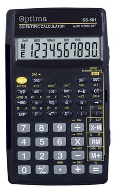 OPTIMA Tehnički kalkulator SS-501 pruža 150 funkcija i automatsko isključivanje uz čvrste tipke, savršen za osnovne i srednje tehničke izračune.