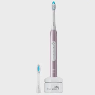 Pulsonic Slim Luxe 4100 zlatna električna četkica koristi ugrađenu punjivu bateriju i dolazi s bazom za punjenje, dvije zamjenjive glave i jednom drškom. Elegantan dizajn kombiniran je s učinkovitim soničnim čišćenjem, idealan za svakodnevnu njegu zubi.