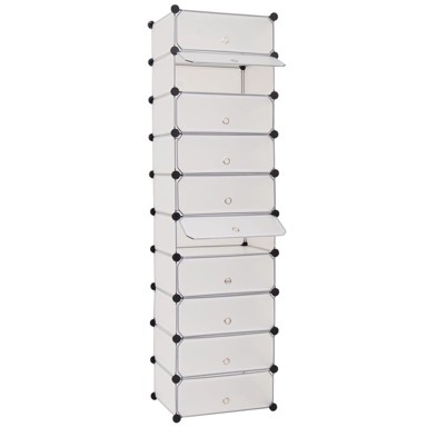 Moderan i funkcionalan organizator za obuću ima 10 odjeljaka s vratima i omogućit će da vaše cipele budu čiste i uredno posložene na jednom mjestu. Ormarić za obuću je izrađen od visokokvalitetnih plastičnih panela s čeličnim okvirom, što ga čini čvrstim i izdržljivim. Zahvaljujući plastičnom materijalu, Stalak za cipele se jednostavno čisti i može se brzo i lako sastaviti pomoću uključenih plastičnih spojnica. Uz to je i lagan pa se jednostavno može premještati. - Boja: Bijela - Materijal: Plastični paneli + čelični okviri - Ukupne dimenzije: 47 x 37 x 172 cm (Š x D x V) - 10 odjeljaka s vratima - S plastičnim spojnicama - Jednostavno sastavljanje