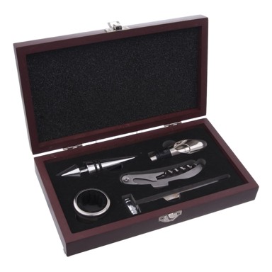 Komplet pribora za vino Orion donosi sve potrebne dodatke za savršeno vinsko iskustvo. U setu se nalaze sklopivi vadičep s nožem, prsten za salvete, čep, lijevak i termometar. Kvalitetna izrada i praktičan dizajn omogućuju jednostavno otvaranje, posluživanje i očuvanje vina, čineći ga izvrsnim darom za ljubitelje vina i elegantne večere.