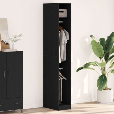 Uski ormar od 30x50x200 cm u crnoj boji hrasta sjajno kombinira moderni dizajn s praktičnom funkcionalnošću. Njegove dimenzije idealne su za iskorištavanje vertikalnog prostora u manjim sobama ili hodnicima, dok unutarnje police pružaju dovoljno mjesta za uredno organiziranje. Mat završna obrada u boji crnog hrasta vizualno obogaćuje prostor, a njegova konstrukcija od konstruiranog drva osigurava čvrstoću i trajnost. Jednostavan je za montažu i uklapa se u razne interijere, od minimalističkih do klasičnih, čineći ga odličnim izborom za dodatno spremište u svakoj prostoriji.