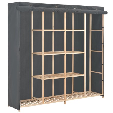 Naš funkcionalni ormar ne predstavlja samo savršeno rješenje za pohranu vaše odjeće, cipela ili modnih dodataka, već i jedinstven ukrasni dodatak vašem domu sa svojim uglađenim i toplim dizajnom. Organizator za odjeću ima izdržljivu drvenu konstrukciju, s više otvorenih odjeljaka. Navlaka od tkanine može držati vašu odjeću skrivenom, istovremeno sprječavajući taloženje prašine. Naš ormar od tkanine lako se sastavlja. - Boja: Siva - Materijal: Tkanina i okvir od masivne jelovine - Dimenzije: 173 x 40 x 170 cm (Š x D x V) - UPOZORENJE: Kako bi se spriječilo prevrtanje, ovaj proizvod mora se upotrebljavati s uključenim priborom za montiranje na zid - Tkanina: Pamuk: 60%, Poliester: 40%