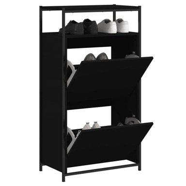 Ormarić za cipele izvrstan je izbor za organizirano pospremanje vaših cipela, posebno za tijesne i uske prostore zahvaljujući svom kompaktnom dizajnu. - Izdržljiv materijal: Konstruirano drvo iznimne je kvalitete s glatkom površinom, a također se odlikuje snagom, stabilnošću i otpornošću na vlagu. - Dovoljno prostora za pohranu: Ovaj stalak za cipele ima 1 policu i 2 preklopne ladice, koje pružaju dovoljno prostora za držanje vaših cipela na dohvat ruke i dobro organiziranima. - Praktična površina: Čvrsta površina ovog ormara za cipele idealna je za izlaganje ukrasnih predmeta, okvira s fotografijama ili biljaka u posudama. - Dizajn koji štedi prostor: Tanki ormarić za spremanje cipela dizajniran je da savršeno pristaje malim prostorima kao što su predsoblje, hodnik, garderoba itd. Upozorenje: Kako bi se spriječilo prevrtanje, ovaj proizvod mora se upotrebljavati s priloženim uređajem za pričvršćivanje na zid. - Boja: Crna - Materijal: Konstruirano drvo - Dimenzije: 60 x 34 x 112 cm (Š x D x V) - Maksimalna nosivost: 50 kg - Sastavljanje potrebno: Da - Legal Documents: Više detalja o sprječavanju prevrtanja vašeg namještaja možete pronaći [ovdje](https://bit.ly/3hY07vB)