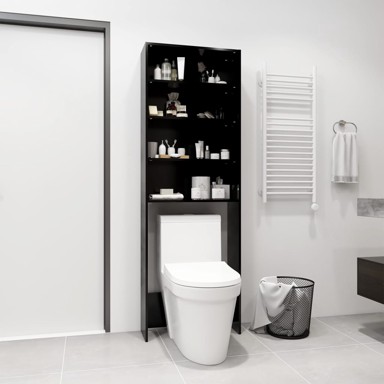Pomoću ovog ormarića za perilicu rublja možete stvoriti i optimalno iskoristiti dodatni prostor za pohranu u kupaonici. Zbog čistih linija i elegantnog dizajna savršeno će se uklopiti u vašu kupaonicu. Ovaj ormarić za kupaonicu čvrst je i izdržljiv. Četiri odjeljka nude dovoljno prostora u kojem možete držati potrepštine za rublje, sredstva za čišćenje, toaletne potrepštine i druge predmete dobro organiziranima i na dohvat ruke. Uz to, ovaj se ormarić lako čisti vlažnom krpom. - Boja: Crna - Materijal: Iverica - Dimenzije: 64 x 24 x 190 cm (Š x D x V) - Pribor za montažu uključen - Sastavljanje potrebno: Da - UPOZORENJE:Kako bi se spriječilo prevrtanje, ovaj proizvod mora se upotrebljavati s uključenim priborom za montiranje na zid.