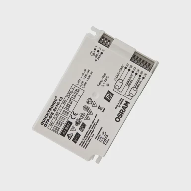 QUICKTRONIC PROFESIONALNI M EKG za CFL. Visokoučinkoviti elektronički upravljački uređaj dizajniran za CFL žarulje. Pruža dug vijek trajanja žarulje, automatsko ponovno pokretanje nakon zamjene i savršeno pokretanje sa senzorima pokreta. Prikladno za sustave hitne rasvjete, javne zgrade, sportske dvorane i tvornice. VDE/VDE EMC certificirani sustav. Napon napajanja 220-240 V s optimalnim predgrijanjem žarne niti i automatskim gašenjem neispravnih žarulja na kraju životnog vijeka (EoL T.2). Indeks energetske učinkovitosti EEI: A2. Sigurnost u skladu sa standardima EN 61347-2-3.