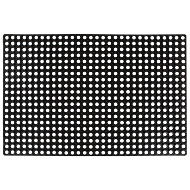 Naš gumeni otirač može se široko upotrebljavati kao unutarnja ili vanjska podna obloga. Može se upotrebljavati kao otirač, ali i na terasi, u garaži, radionici, staji, konjušnici ili automobilu. Možete lako povezati otirač sa sljedećim kako biste dobili bilo koji željeni oblik ili veličinu pomoću priključaka (nisu uključeni). Napravljen od 100 % gume, otirač je otporan na vremenske utjecaje, ne kliže se i lako se čisti. - Boja: Crna - Materijal: 100% guma - Veličina: 80 x 120 cm (Š x D) - Debljina: 16 mm - Otporno na vremenske utjecaje - Jednostavno za čišćenje