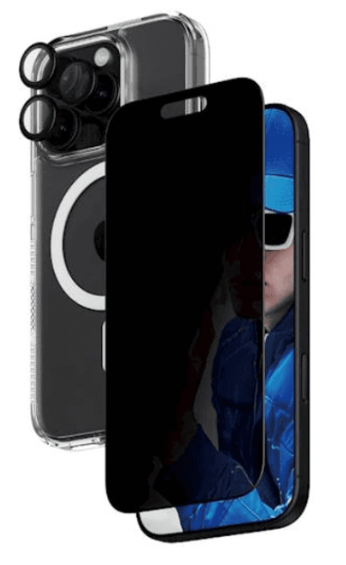PANZERGLASS paket privatnosti 3u1 za iPhone 16 Pro objedinjuje futrolu, zaštitu zaslona i zaštitu za stražnju kameru radi pouzdane zaštite od udaraca, prašine i prljavštine. Zaštita zaslona pruža i dodatni sloj privatnosti smanjenjem vidljivosti sadržaja pri bočnom pogledu. Zaštita kamere postavlja se brzo i jednostavno te čuva leće bez narušavanja kvalitete fotografija.